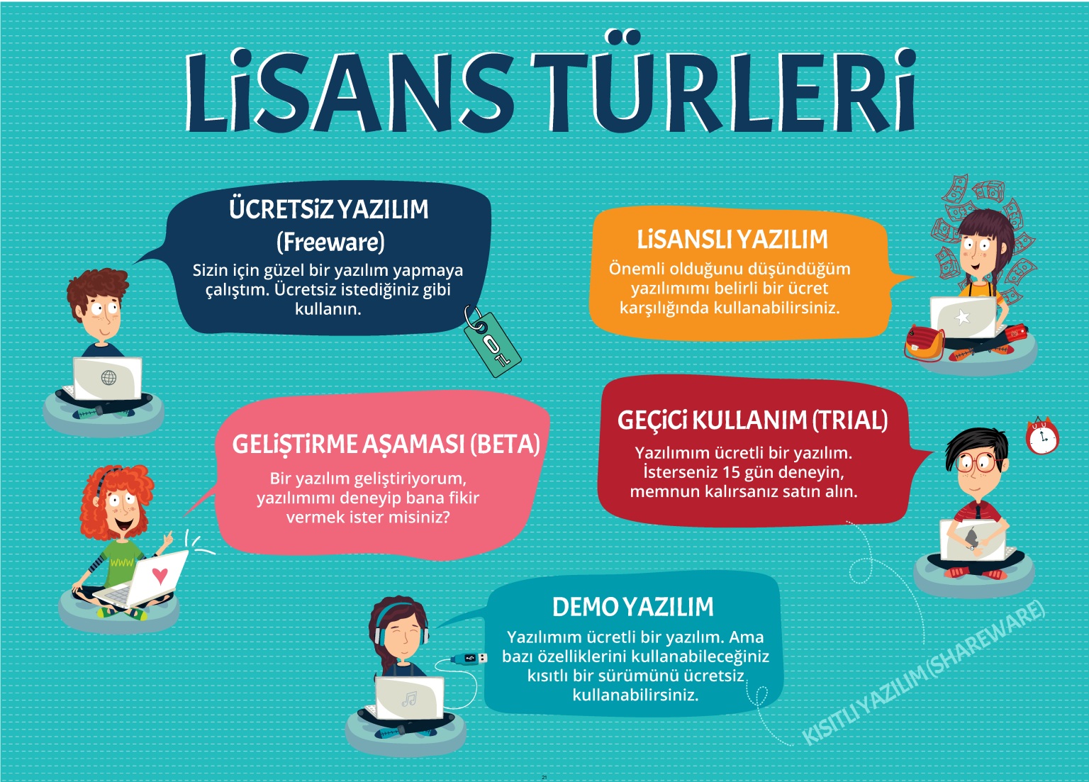 Lisans, yazılımların nasıl kullanılacağı konusunda bize haklar ve kurallar sunan bir izin belgesidir. Lisanslar, bir yazılımı ücretsiz mi yoksa ücretli mi kullanabileceğimizi, paylaşabileceğimizi veya değiştirebileceğimizi belirtir.