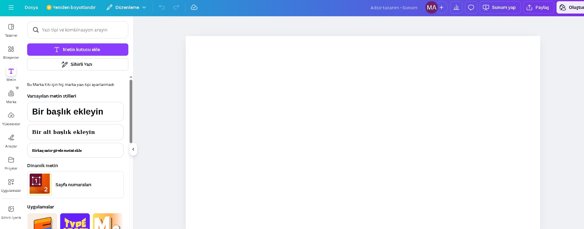 Metin Kısmında tasarımınıza ekleyeceğiniz metinleri ve bu metinlerin Yazı Tiplerini bulabilir. Tasarımınıza ekleyebilir ve düzenleyebilirsiniz.