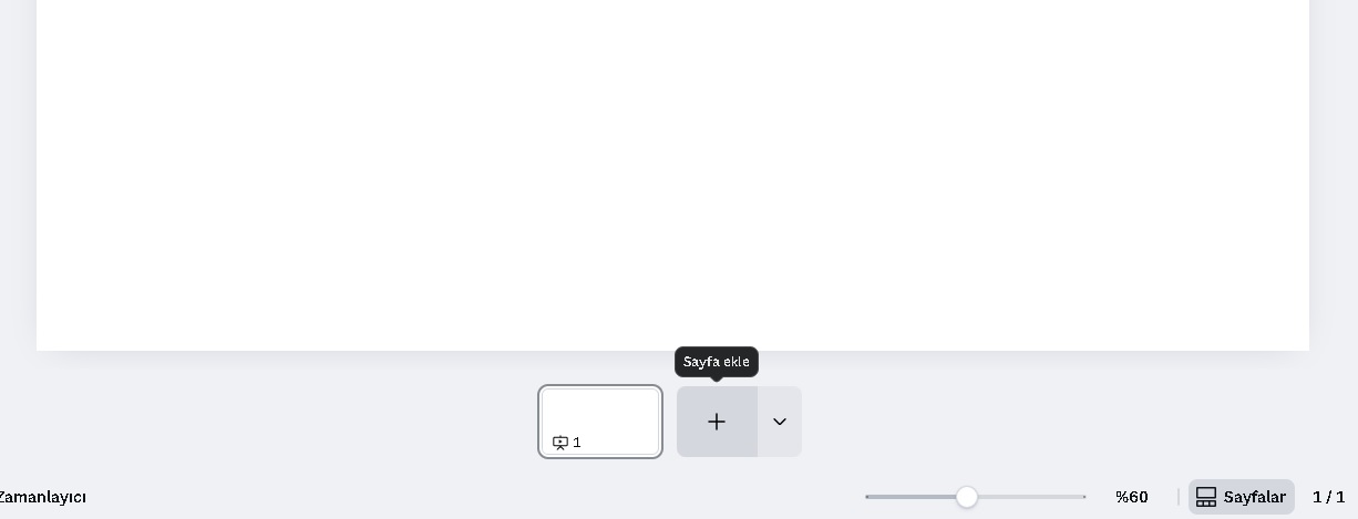 Çalışma sayfasının alt tarafında yer alan + “Sayfa Ekle” butonunu kullanarak sunuma sayfalar ekleyebiliriz.