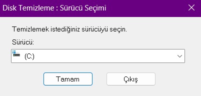 5. Windows + R tuşlarıyla çalıştır penceresini açıp “cleanmgr” yazıp Tamam düğmesine tıklayalım.